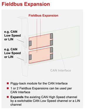 The CAN-IB810/PMC is available with two CAN-FD channels with galvanic isolated interfaces. For use in the automotive field the high-speed CAN channels can optionally be switched to low-speed CAN via software. In addition, the card can be equipped with up to two LIN interfaces. Furthermore, the modular architecture of the interface card enables the easy extension with customer specific interfaces via piggyback modules.