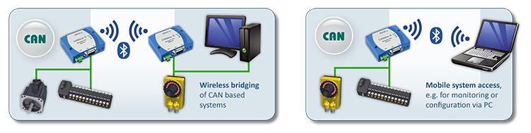 Per le operazioni di manutenzione, consente ad esempio l’accesso wireless ai sistemi CAN utilizzando l’interfaccia Bluetooth interna di cui sono normalmente dotati PC e notebook. Questa caratteristica consente di effettuare operazioni di diagnosi o di configurazione in modo molto semplice e flessibile anche su componenti difficili da raggiungere.