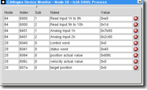 The CANopen Device Monitor is a tool for the graphical inspection and configuration of CANopen devices in a CANopen network. The embedded scripting ability makes it possible to access the implemented CANopen services and to write test or control applications with a minimum of effort. The information on how to display the device object dictionary is obtained from the EDS file of the device (EDS - Electronic Data Sheet) or can be scanned from the device directly. Special device configurations can be loaded, stored and scanned from DCF files.