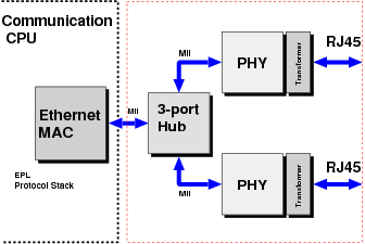 The Ethernet Hub from port is a generic VHDL design for FPGAs and CPLDs. In conjunction with port's POWERLINK Enhanced Ethernet MAC it offers a fast and easy connection to an POWERLINK network.