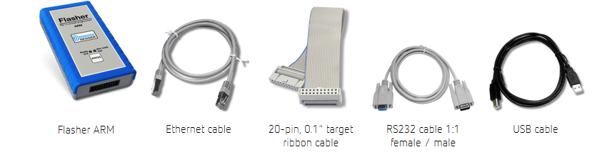Flasher Arm è un tool di programmazione per microcontrollori con memoria flash interna o esterna e per architetture core Arm. Può essere utilizzato per la programmazione di target Flash sia con il software J-Flash che in modalità stand-alone. Oltre a ciò, Flasher Arm dispone di tutte le funzionalità J-Link. Inoltre può essere utilizzato come J-Link. Flasher Arm può essere connesso via USB, Ethernet o interfaccia RS232 a PC equipaggiati con Microsoft Windows 2000, Windows XP, Windows 2003, Windows Vista, Windows 7, Windows 8 o Windows 10. Nel dispositivo è incorporato un connettore JTAG a 20 pin che è pienamente compatibile con l’analogo connettore standard Arm.