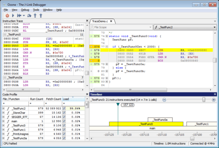 The Tutorial Project starts with a simple application running on the target hardware, demonstrating the trace features without any special code or configuration. More advanced examples, including system init and the use of embOS are part of the project too, and can be analyzed with J-Trace PRO as well. It includes the pre-built applications, the Ozone projects, and an Embedded Studio project to modify and re-build the application.