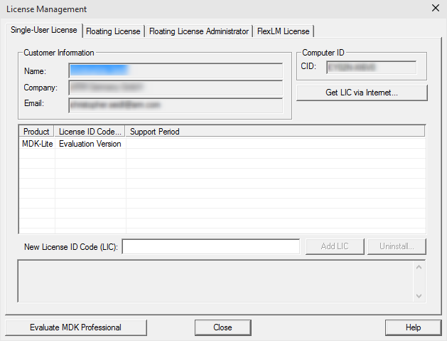 MDK-Lite has a built-in free seven day trial license of MDK-Professional. To give the user the flexibility to choose the evaluation period himself, this license needs to be activated manually. The following instructions explain the required steps.